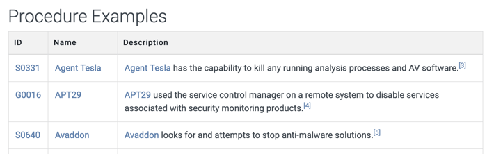 ATT&CK provides information on the details of the technique, but you need to research further to identify the specific procedures used. For example, API call names used in a process injection attack are given the MITRE ATT&CK Process Injection page, in the example below, for the DLL Injection technique [4].