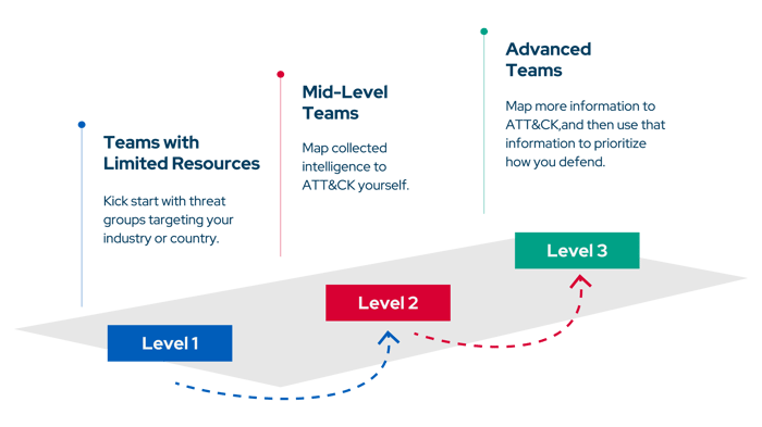 If your organization has a mid-level team with threat analysts, you can map threat intelligence to ATT&CK yourself rather than relying on what others have previously mapped as a next-level activity you may take.