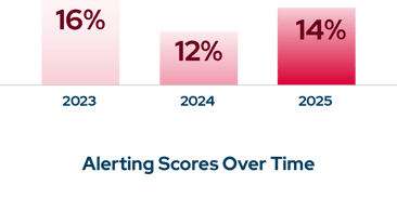 On the detection side, the report highlights mixed results. Log collection remained steady at 54%, meaning nearly half of attacker behaviors still go unrecorded. Meanwhile, alert scores rose modestly from 12% to 14%, indicating that less than one in seven attacks trigger actionable notifications. This persistent gap shows the difference between visibility and actionable intelligence, a gap that can be exploited by attackers if left unaddressed.