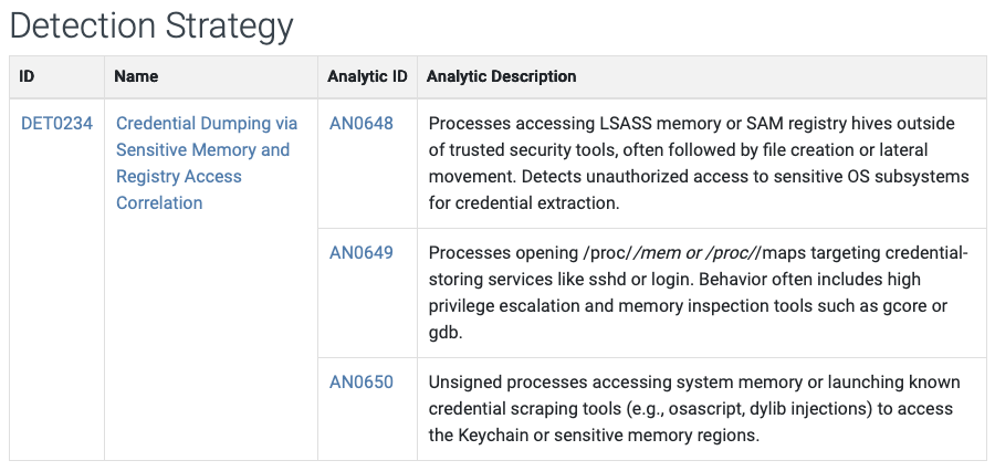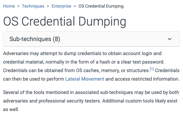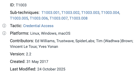 This is the metadata section of the OS Credential Dumping technique, which includes: