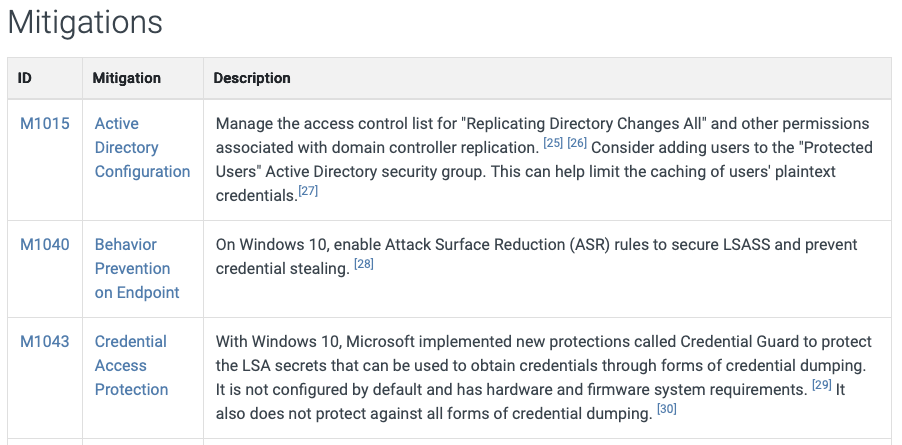 This section provides suggestions for common mitigations for the technique or sub-technique. As shown in the above image, some mitigation suggestions are very specific and easy to apply, but some are too generic. Currently, 44 different Mitigation measures are provided by MITRE ATT&CK for Enterprise.