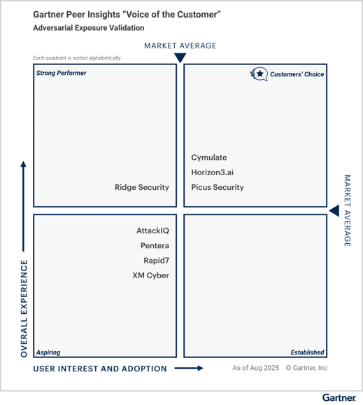 - Picus joins Cymulate and Horizon 3.ai in the Customers' Choice quadrant.